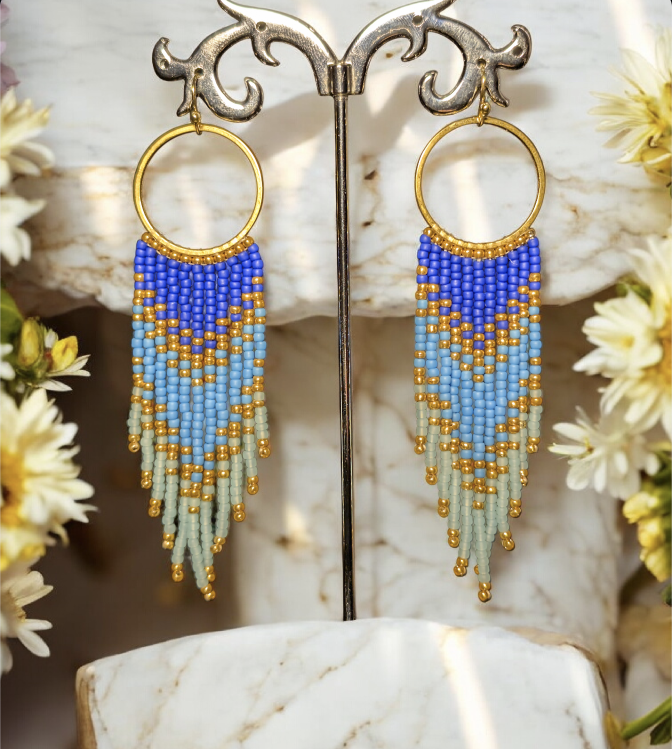 Diseño bohemio y ligero con caída en flecos de chaquira, ideales para dar movimiento y color a tu look.🌊