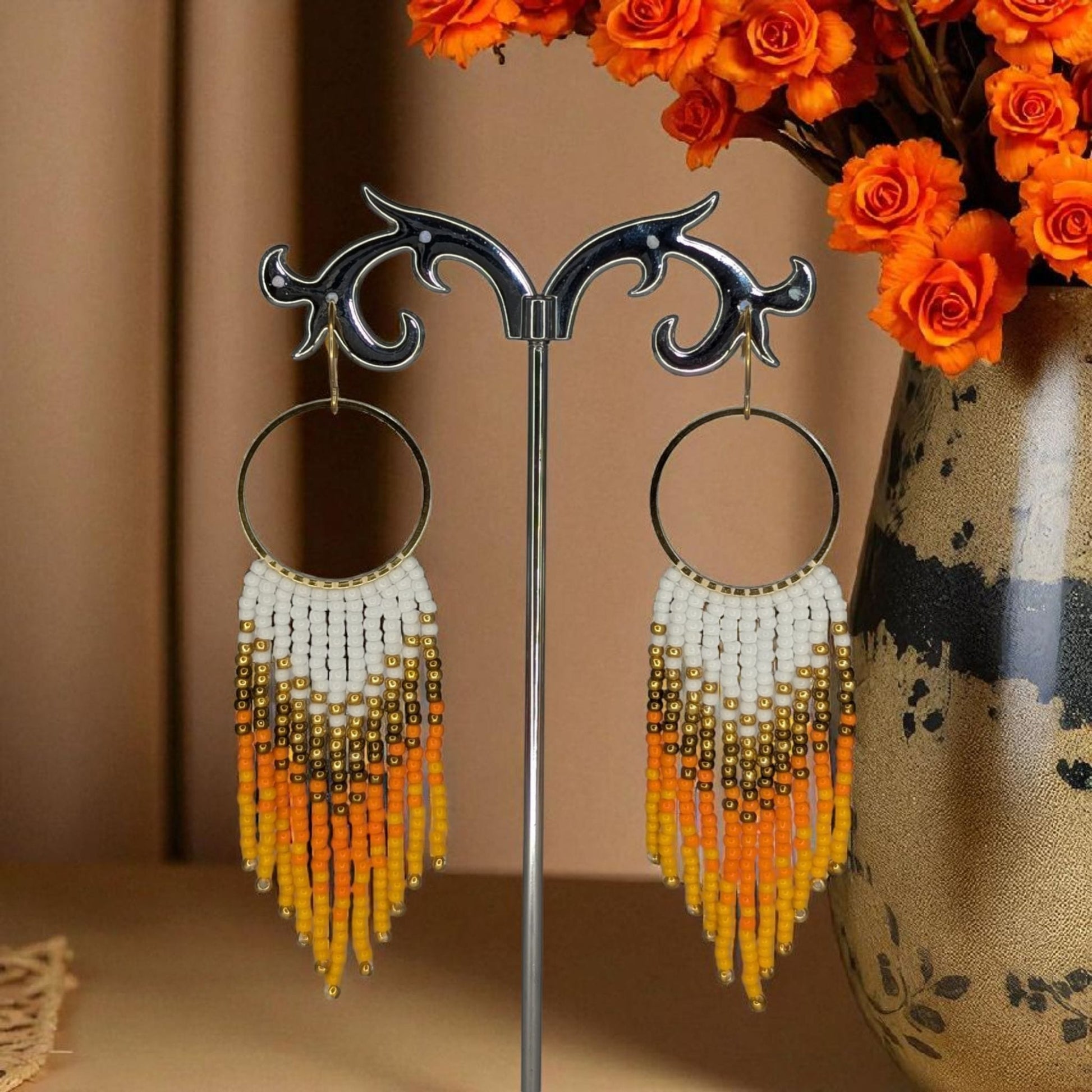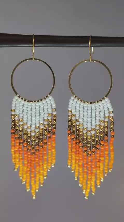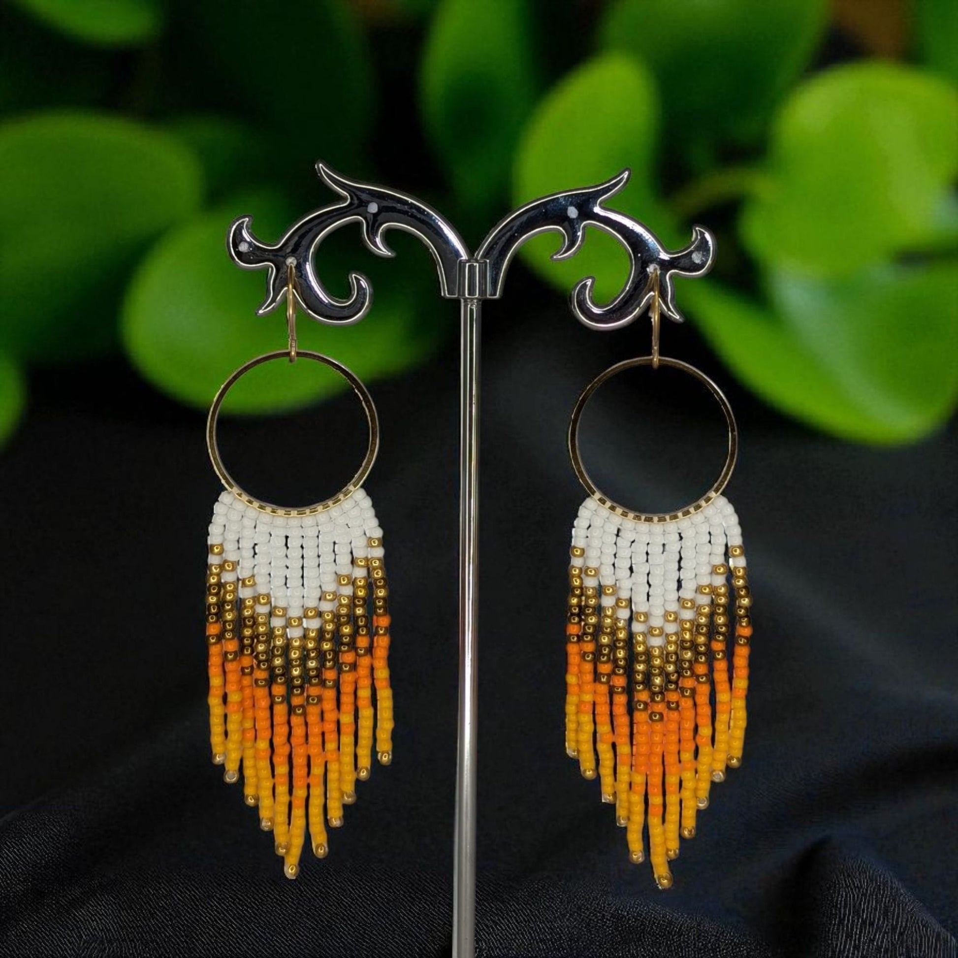 Ilumina tu día con los radiantes pendientes “Amanecer Dorado”, inspirados en los primeros rayos del sol que acarician la tierra. Confeccionados a mano en tonos blanco, dorado, naranja y amarillo, evocan la calidez, la esperanza y la energía positiva del amanecer.